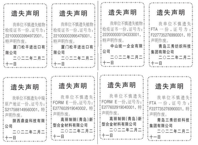 入境货物通关单遗失声明