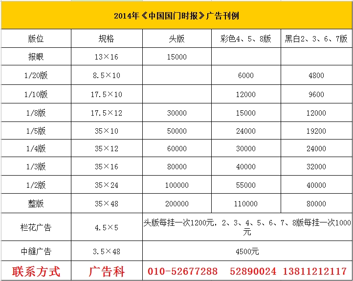 2014年《中国国门时报》广告刊例