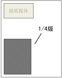 四分之一版版面广告形式就是把一个整版,分成四分之一等分。根据尺寸又分为竖四分之一版,横四分之一版,也有单条的四分之一版面面积的特殊版型。四分之一版是整版的四分之一,半版的二分之一,在设计上可以充分发挥。可投放硬广告和软广告。