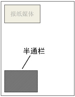半通栏广告一般分为大小两类:约65mm乘以120mm或约100mm乘以170mm。由于这类广告版面较小,而 且众多广告排列在一起,互相干扰,广告效果容易互相削弱,因此,如何使广告做得超凡脱俗,新颖独特 ,使之从众多广告中脱颖而出,跳入读者视线,是广告文案的写作应特别注意的。